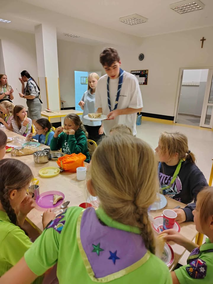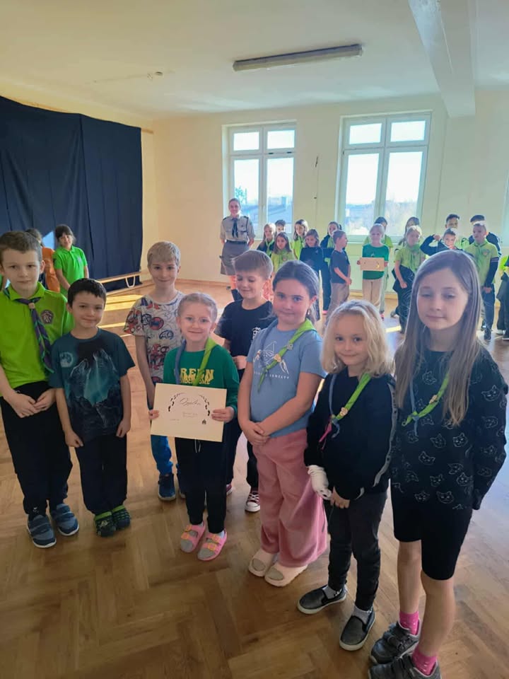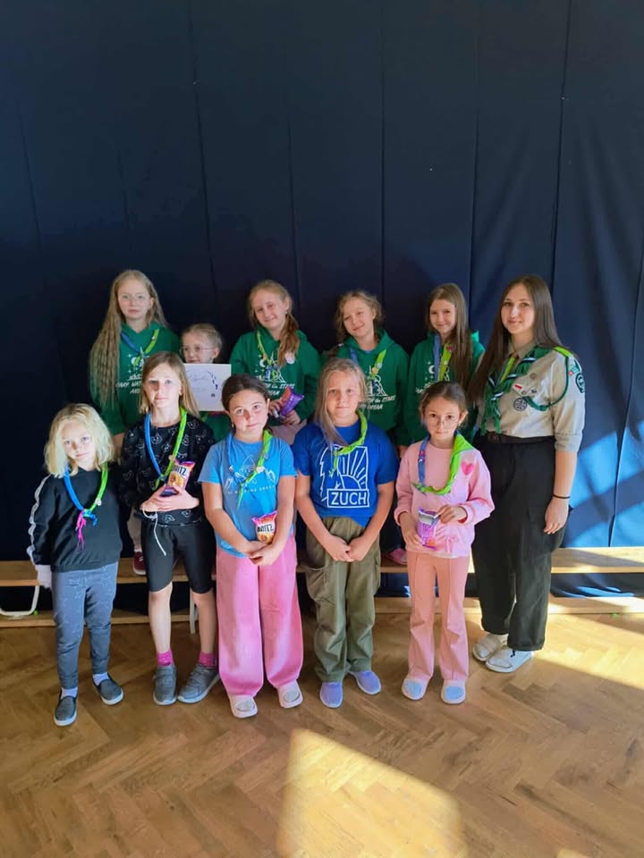 W dniach 24-25. października 2025 r. gościliśmy w naszej szkole zuchy - 7 Gromada Zuchowa "Dzielne Skrzaty", 28 Gromada Zuchowa "Łowcy Skarbów" oraz 12 Gromada Zuchowa "Leśne Duszki". Wzięły one udział w nocowaniu pełnym przygód, śmiechu i zuchowej energii! Na początku zuchowi odkrywcy zostali podzieleni na osiem patroli: Szyszki, Kociary, Wojankowe Sigmy, Łowcy Leśnych Duchów, Niebieskie Kokardki, Pantery i Przyjaciele ze Złota. Wyruszyli na grę fabularną, której celem było odnalezienie tajemniczego Marka. Po kolacji zuchy dokończyły grę, a potem przyszedł czas na najważniejsze momenty wieczoru - chustowanie nowych zuchów oraz złożenie obietnicy zucha. Wieczór zuchy zakończyły wspólnym oglądaniem filmu „Czarne Stopy”. To był cudowny czas spędzony razem - pełen uśmiechu, emocji i prawdziwej zuchowej przygody! Dziękujemy zuchom za odwiedzenie naszej szkoły i zapraszamy ponownie.