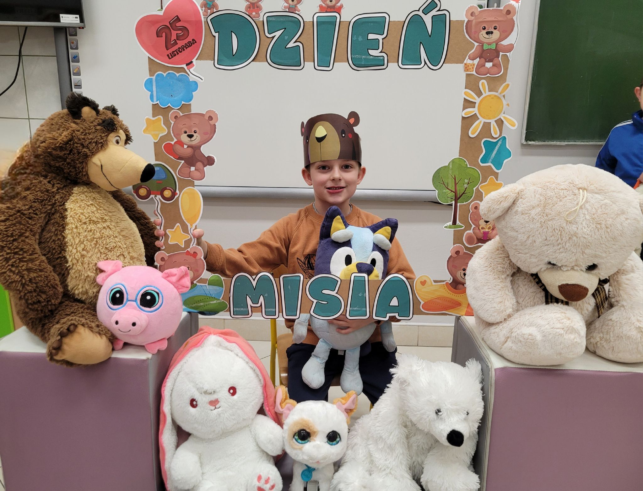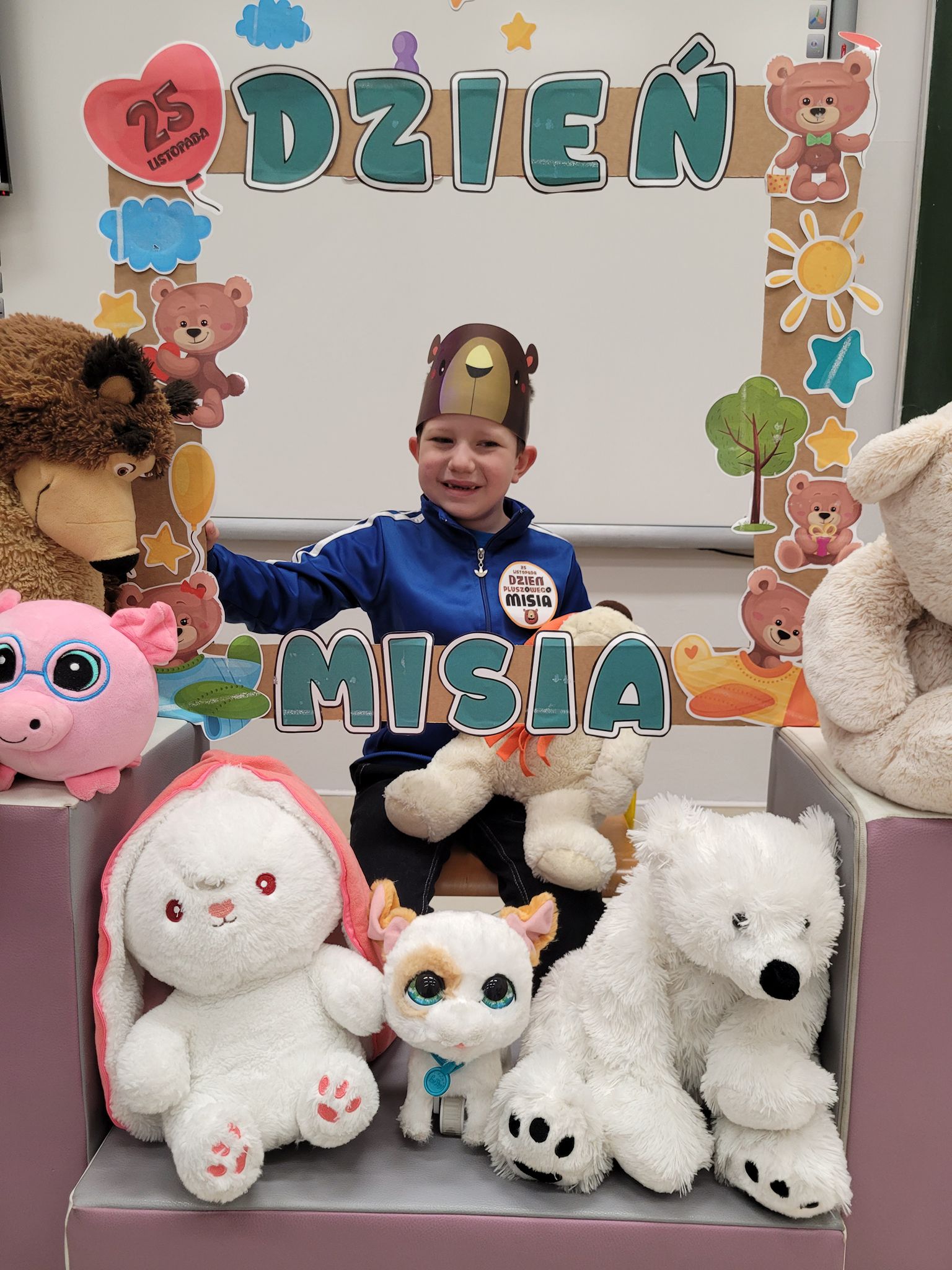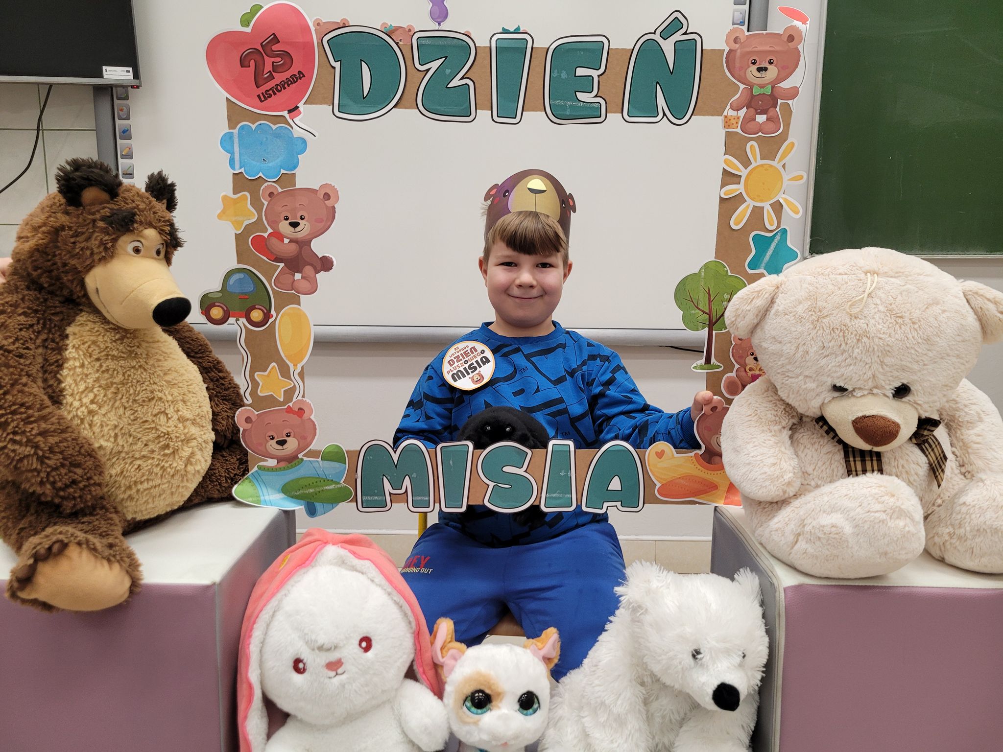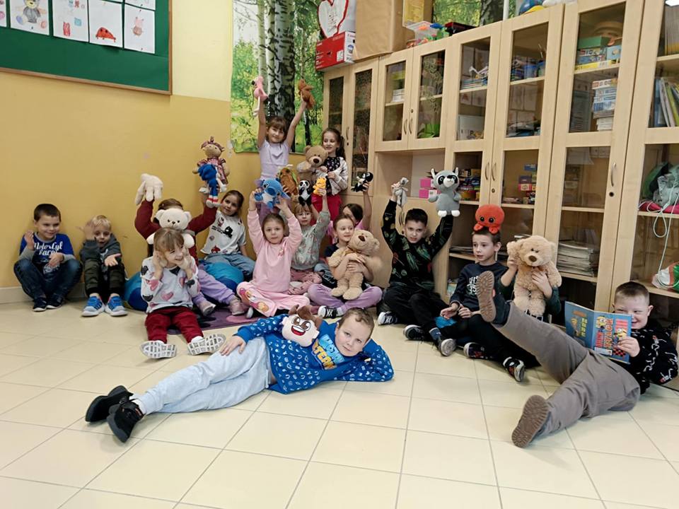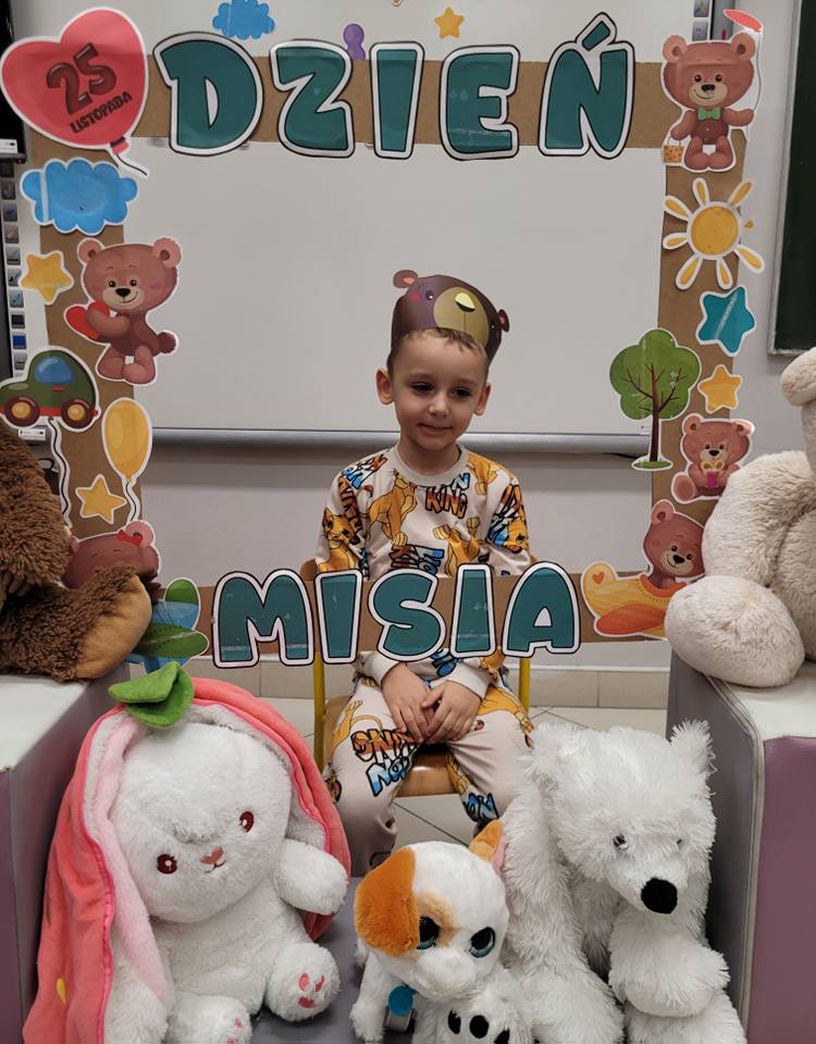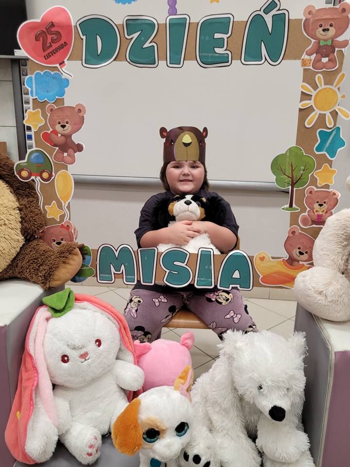 Dnia 25 listopada dzieci z grup 0a i 0b oraz klasy 1-3 obchodziły Dzień Pluszowego Misia. Z tej okazji przygotowano dla nich specjalne zajęcia, które przeniosły uczniów w świat bajkowych bohaterów. Tego dnia każde dziecko przyniosło do klasy swojego ukochanego pluszaka z, którym z radością dzieliło się z rówieśnikami. Na początku dnia dzieci obejrzały prezentację o najsłynniejszych misiowych postaciach z bajek. Poznały takie misie jak: Miś Uszatek, Colargol, Paddington, Kubuś Puchatek, Miś Yogi oraz Gumisie. Dzieci dowiedziały się, czym charakteryzuje się każdy z bohaterów – że Kubuś Puchatek uwielbia miód, Paddington zajada się kanapkami z marmoladą, a większość misiów to prawdziwe łasuchy, które jednocześnie są bardzo życzliwe, pomocne i przyjacielskie. Najmłodsi uczniowie wysłuchali również opowiadań i wierszyków o bohaterach dzisiejszego święta, a następnie wspólnie zaśpiewali misiową piosenkę, tworząc radosną i pełną ciepła atmosferę. Dużą atrakcją była możliwość zrobienia sobie zdjęcia w specjalnej „misiowej ramce”, co sprawiło dzieciom wiele radości i pozwoliło uwiecznić ten wyjątkowy dzień.