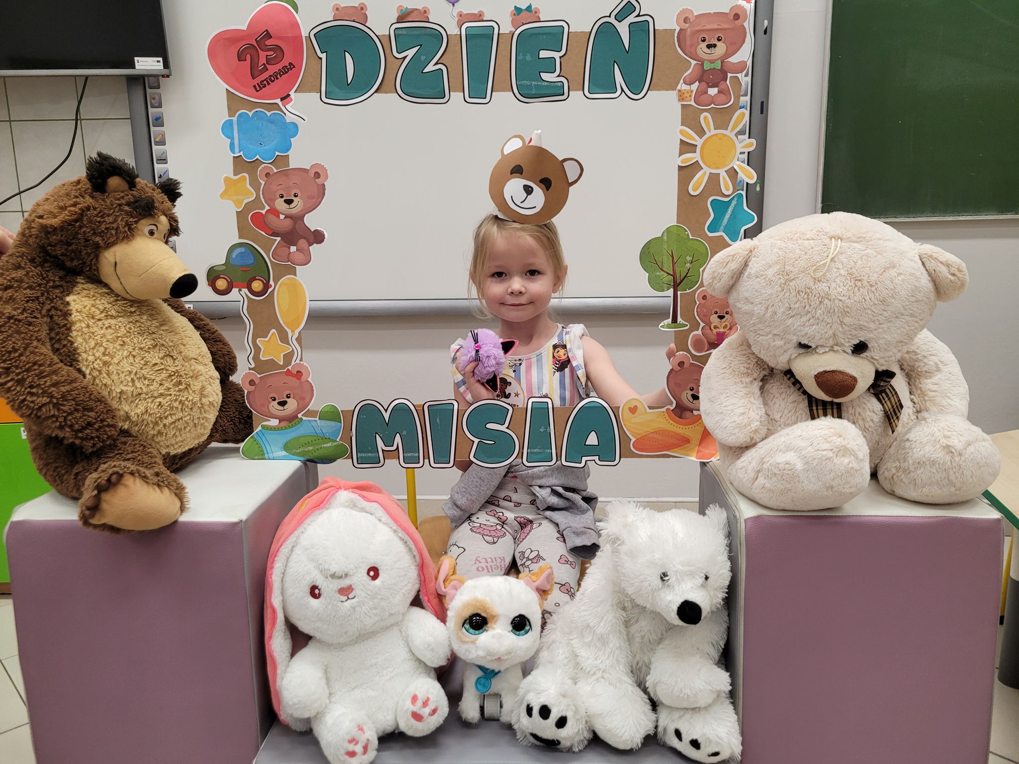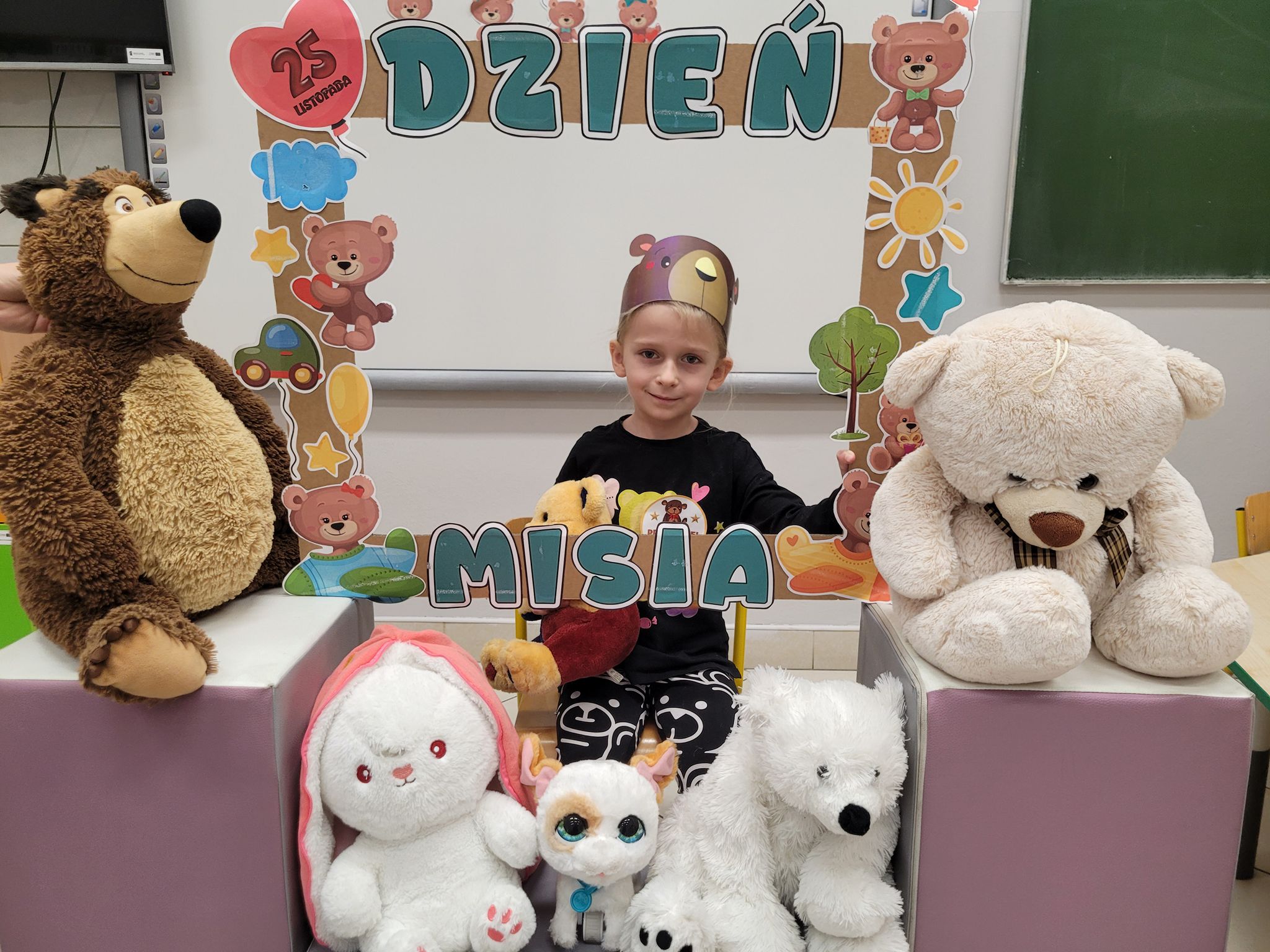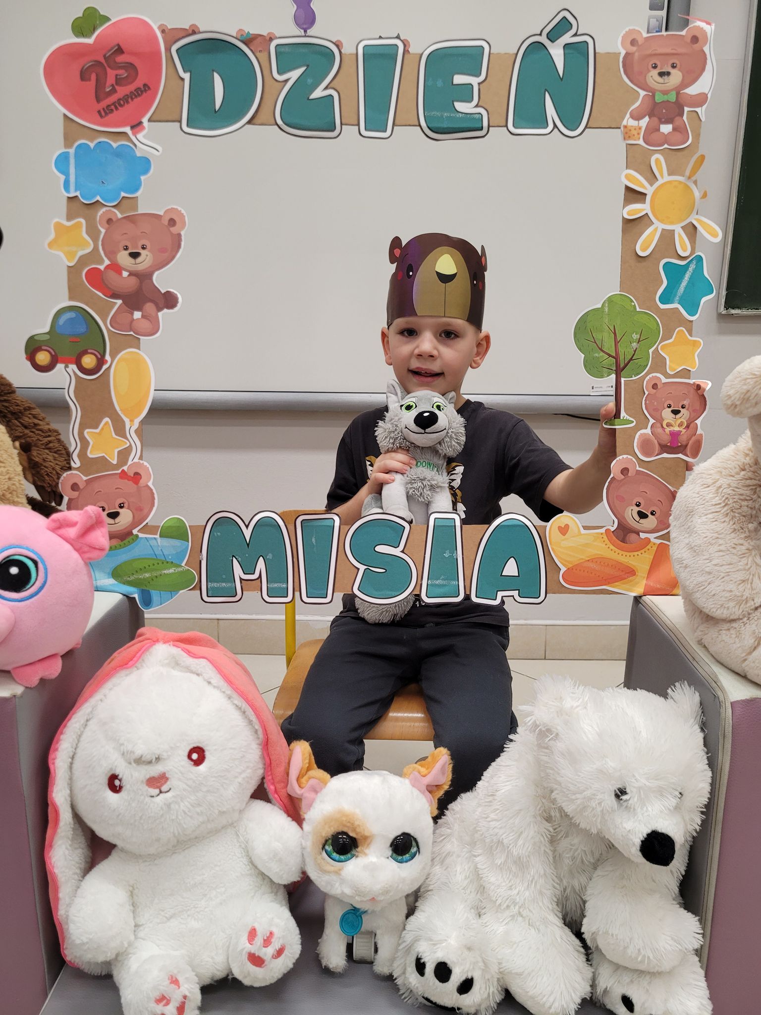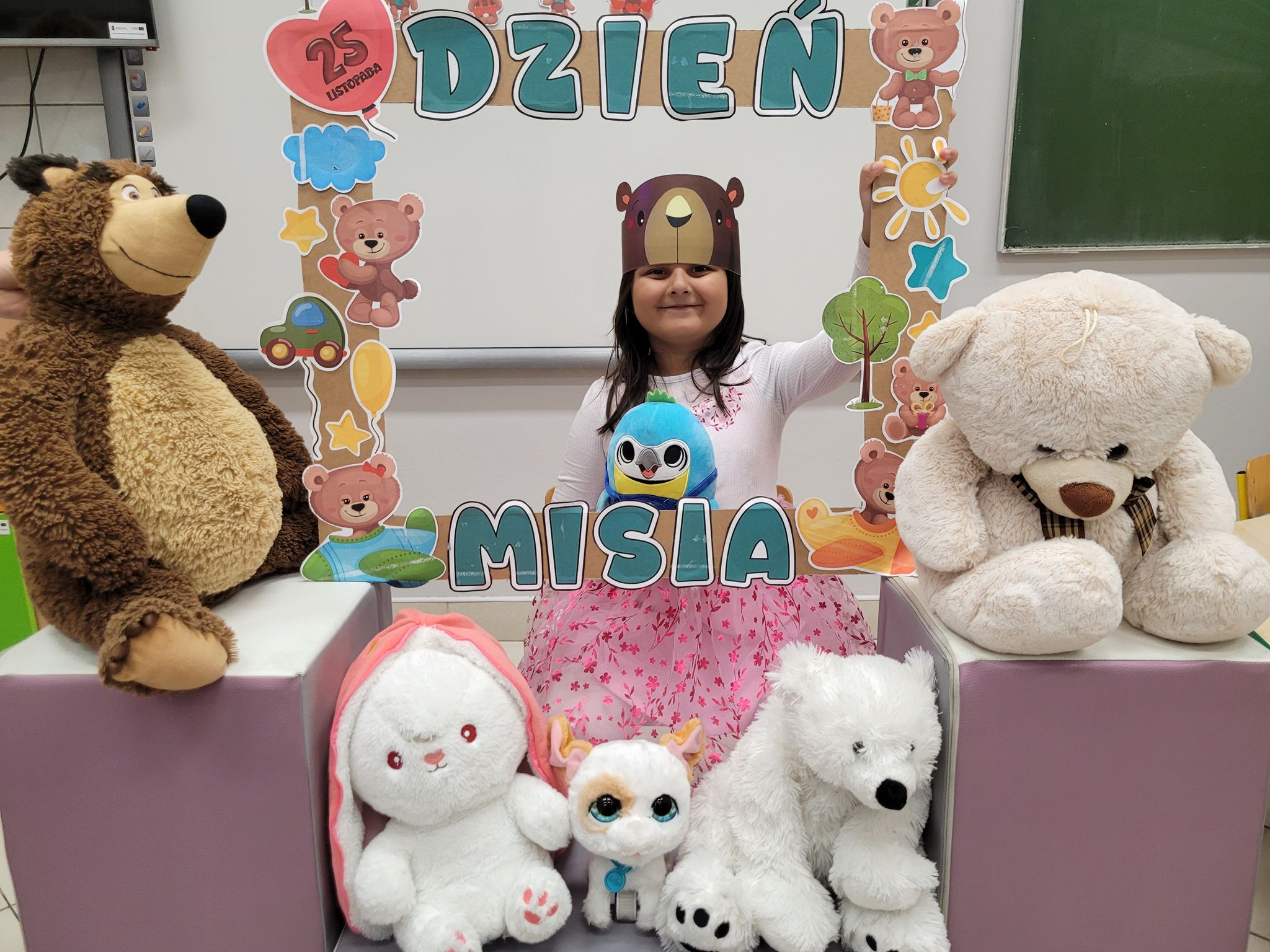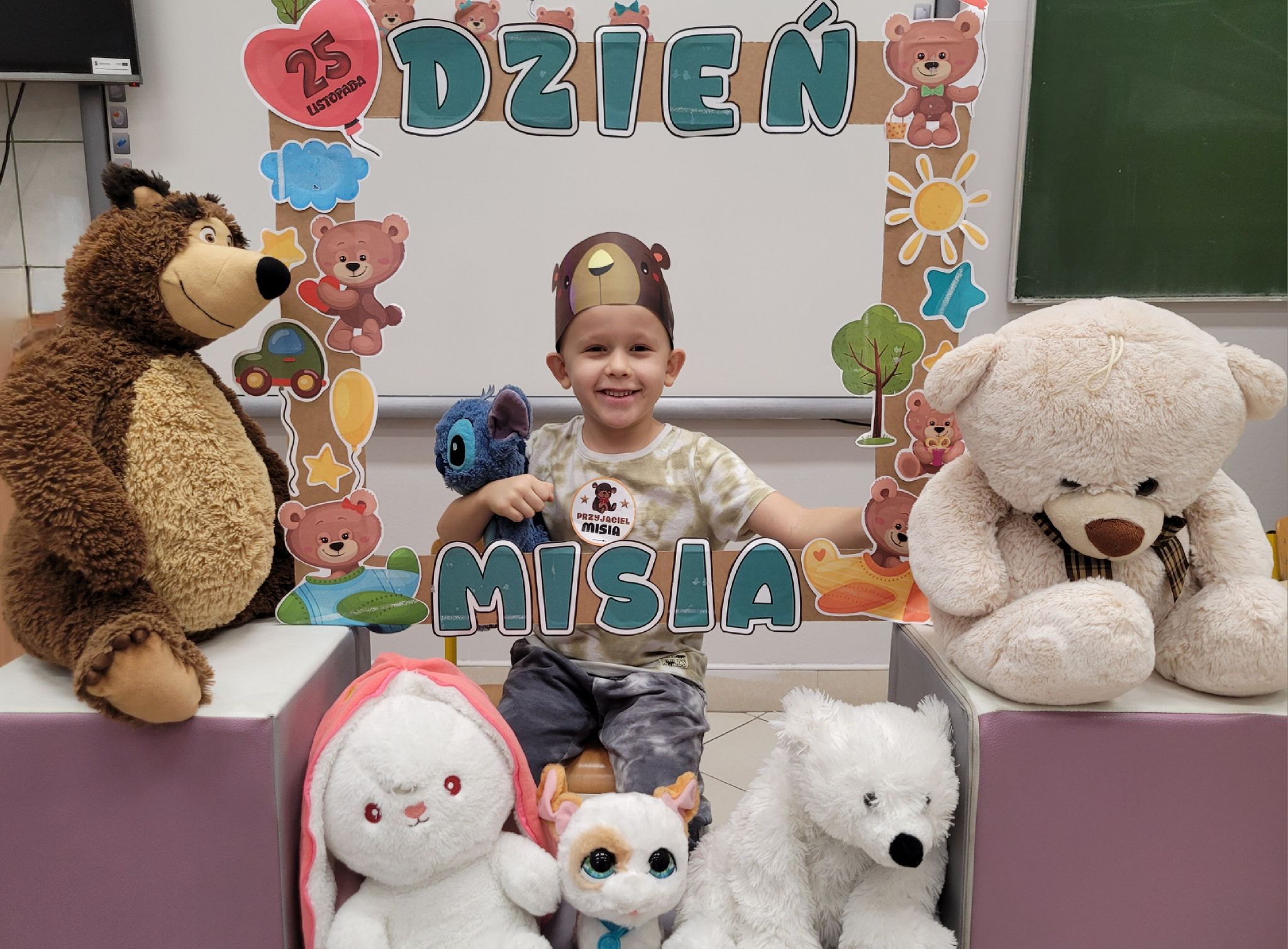 Dnia 25 listopada dzieci z grup 0a i 0b oraz klasy 1-3 obchodziły Dzień Pluszowego Misia. Z tej okazji przygotowano dla nich specjalne zajęcia, które przeniosły uczniów w świat bajkowych bohaterów. Tego dnia każde dziecko przyniosło do klasy swojego ukochanego pluszaka z, którym z radością dzieliło się z rówieśnikami. Na początku dnia dzieci obejrzały prezentację o najsłynniejszych misiowych postaciach z bajek. Poznały takie misie jak: Miś Uszatek, Colargol, Paddington, Kubuś Puchatek, Miś Yogi oraz Gumisie. Dzieci dowiedziały się, czym charakteryzuje się każdy z bohaterów – że Kubuś Puchatek uwielbia miód, Paddington zajada się kanapkami z marmoladą, a większość misiów to prawdziwe łasuchy, które jednocześnie są bardzo życzliwe, pomocne i przyjacielskie. Najmłodsi uczniowie wysłuchali również opowiadań i wierszyków o bohaterach dzisiejszego święta, a następnie wspólnie zaśpiewali misiową piosenkę, tworząc radosną i pełną ciepła atmosferę. Dużą atrakcją była możliwość zrobienia sobie zdjęcia w specjalnej „misiowej ramce”, co sprawiło dzieciom wiele radości i pozwoliło uwiecznić ten wyjątkowy dzień.