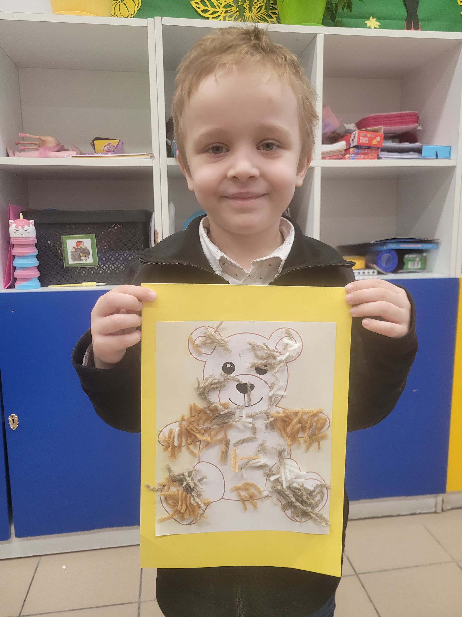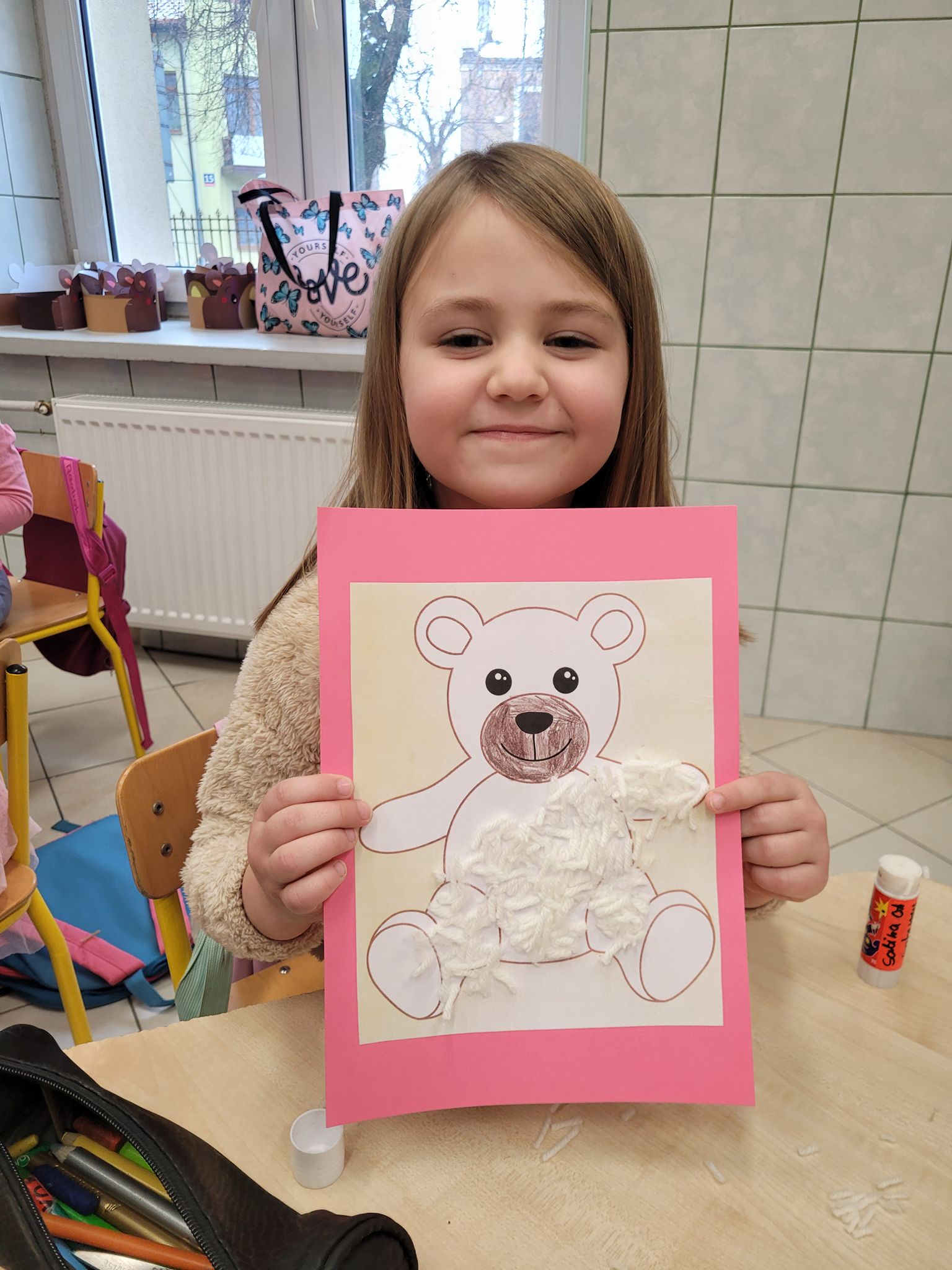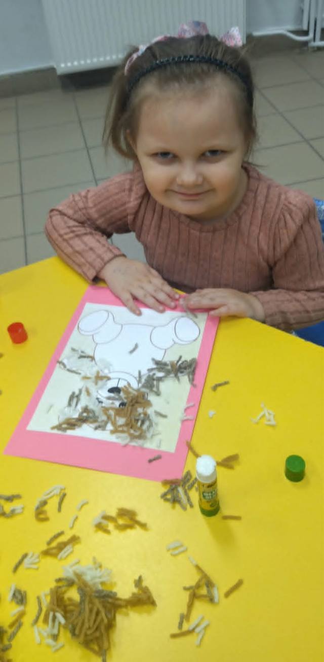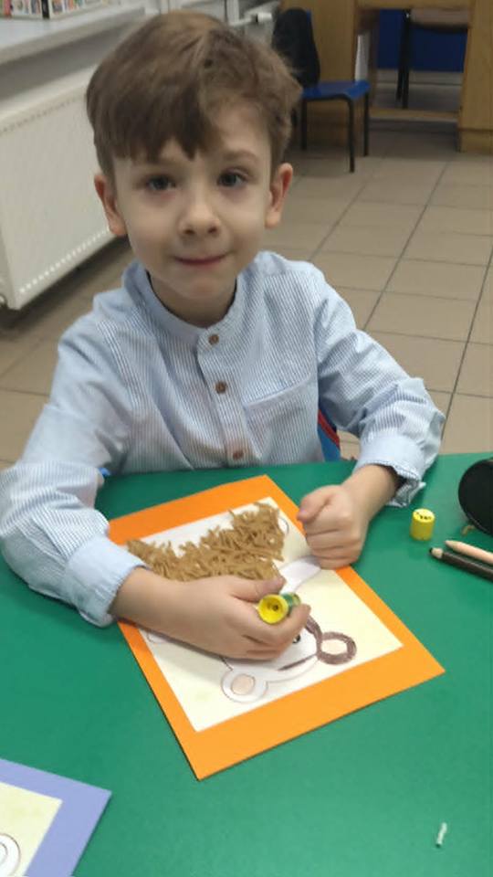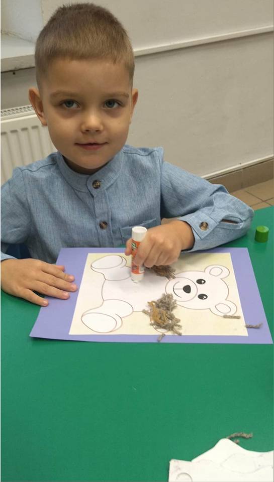 Na zakończenie zajęć każdy mały uczeń wykonał pracę plastyczną – misia z włóczki. Powstały piękne, mięciutkie prace, z których dzieci były bardzo dumne.