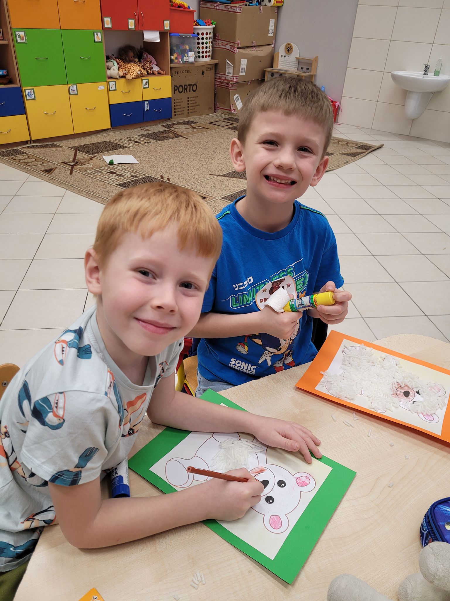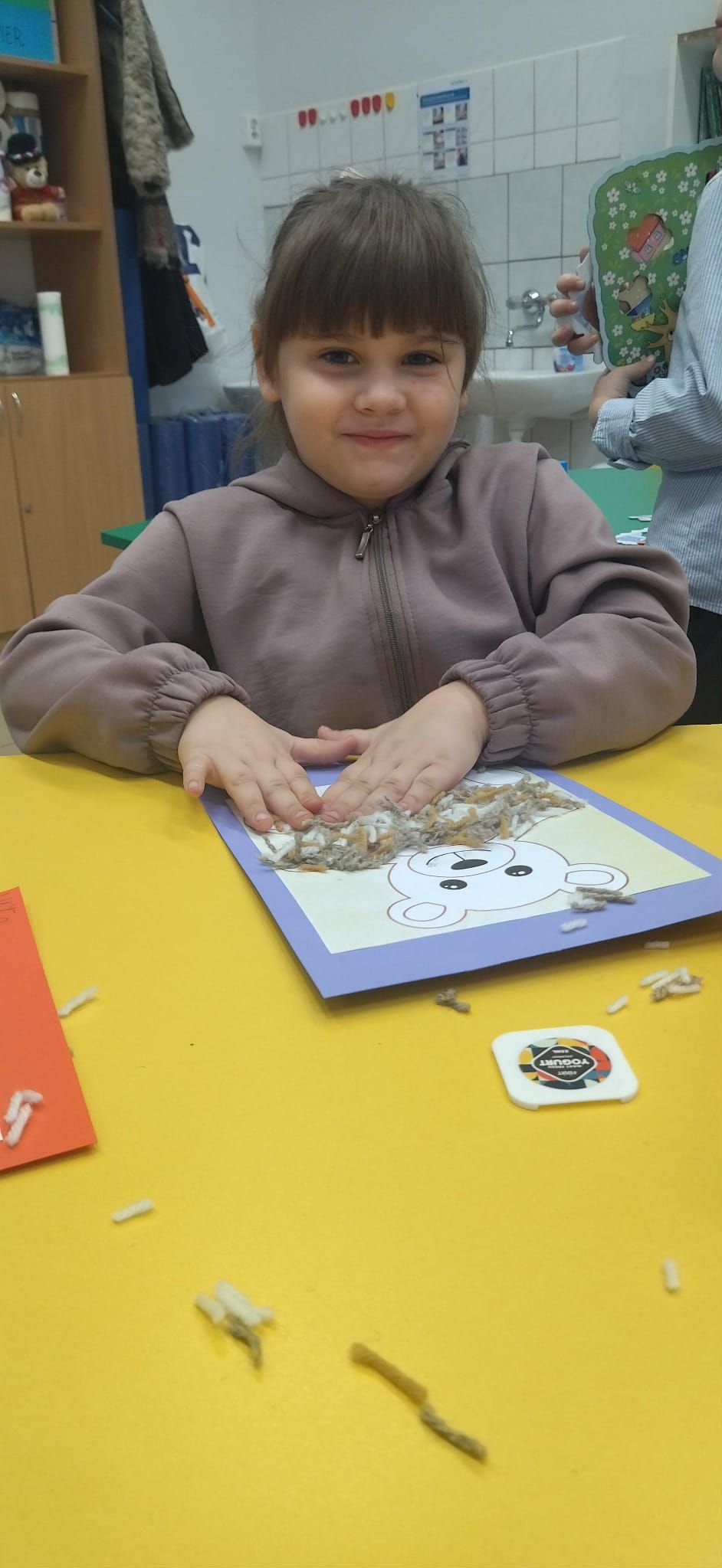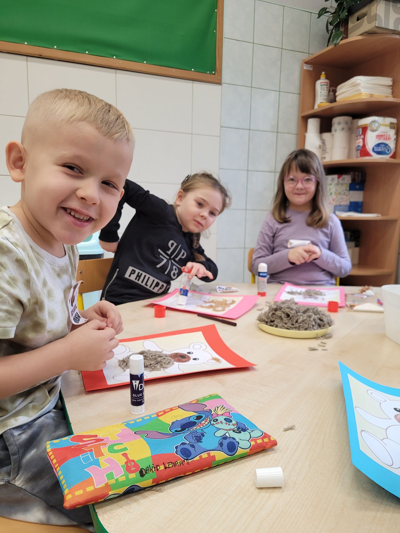 Na zakończenie zajęć każdy mały uczeń wykonał pracę plastyczną – misia z włóczki. Powstały piękne, mięciutkie prace, z których dzieci były bardzo dumne.