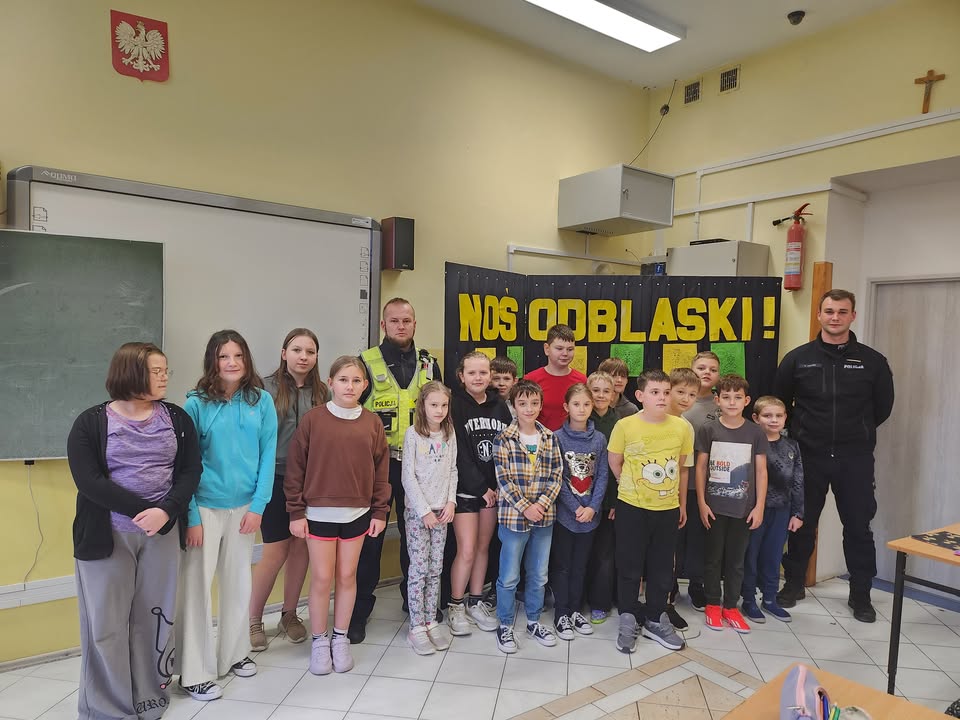 zwłaszcza tam, gdzie brakuje chodnika lub pobocza. Omówili zasady prawidłowego przechodzenia przez jezdnię oraz zachowania ostrożności w miejscach oczekiwania