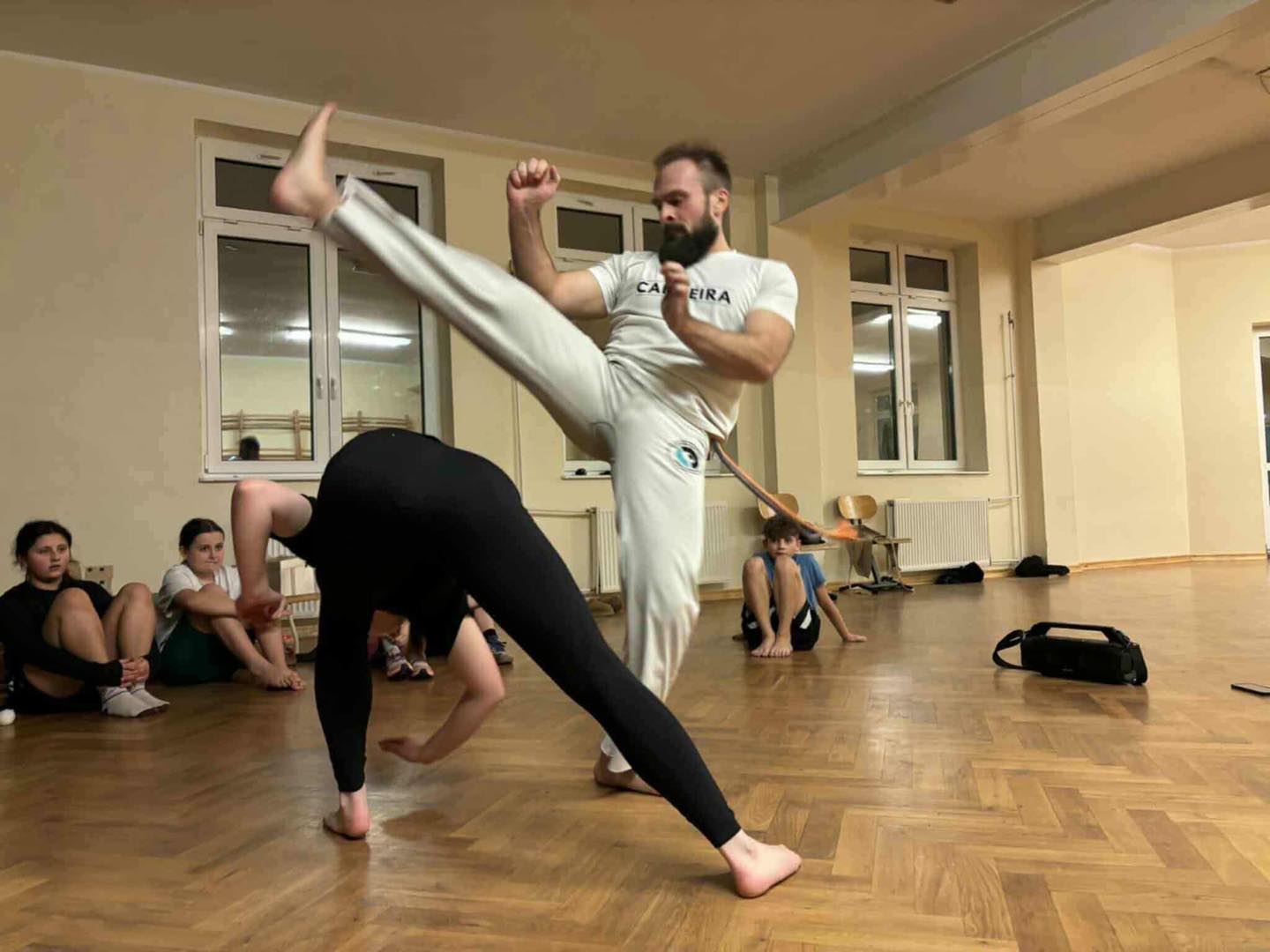 Po obiedzie wzięli udział w zajęciach z capoeiry, które poprowadził Pan Jacek Synowiec. Następnie odbyły się zajęcia z pierwszej pomocy dotyczące złamań. Nie zabrakło symulacji, dzięki którym harcerze mogli sprawdzić się w praktyce.