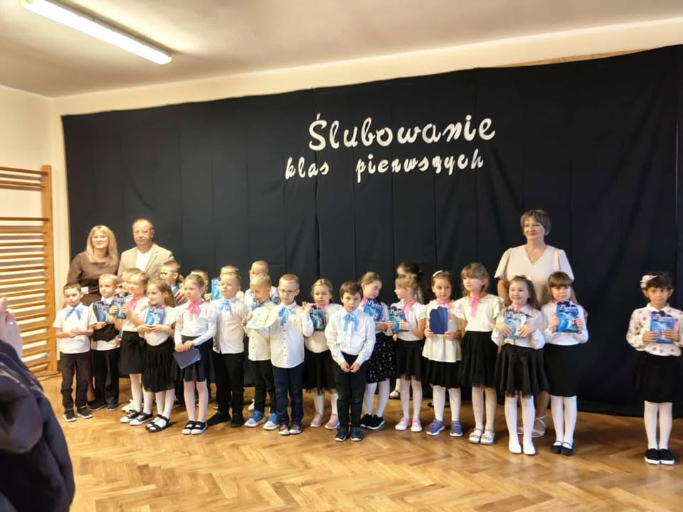 W naszej szkole odbyła się wyjątkowa uroczystość... Ślubowanie Uczniów Klas Pierwszych. W obecności zaproszonych Dyrektorów Pana Jacka Stępnia, Pana Dariusza Pęczka i Pana Pawła Małyszy, nauczycieli oraz dumnych rodziców nasi najmłodsi uczniowie złożyli uroczyste ślubowanie i oficjalnie zostali przyjęci do grona społeczności szkolnej. Uroczystość uświetnił piękny taniec poloneza, a także występy artystyczne przygotowane przez pierwszaków. Było wzruszająco radośnie i bardzo słodko gratulujemy wszystkim pierwszoklasistom oraz dziękujemy rodzicom, wychowawcom, Pani Małgorzacie Siwek, Panu Markowi Zwolskiemu oraz uczennicy Marcie Jendrasik i przewodniczącej szkoły Blance Kwaśniak.